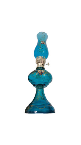 چراغ نفتی شاه عباسی پایه بلند فیروزه ای