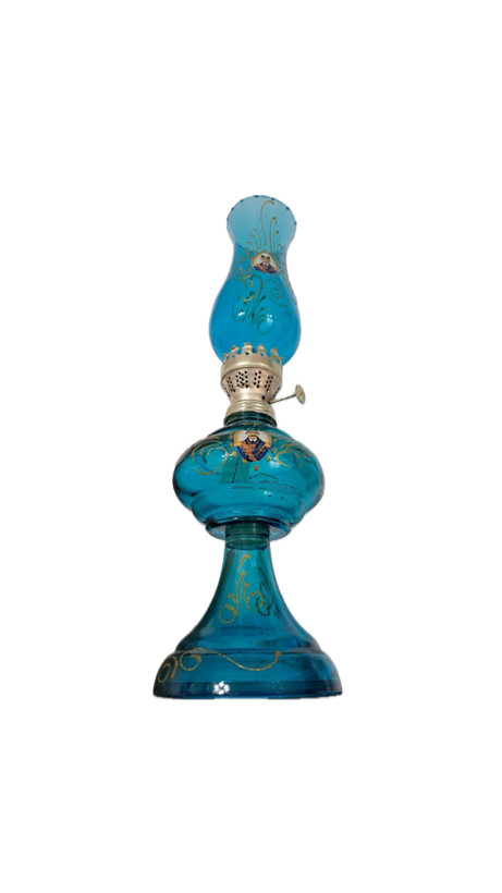 چراغ نفتی شاه عباسی پایه بلند فیروزه ای