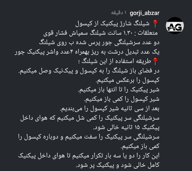 📍 شیلنگ شارژ پیکنیک از کپسول
