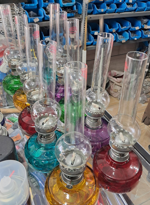 چراغ نفتی روشنایی رنگی با شیشه و فیتیله